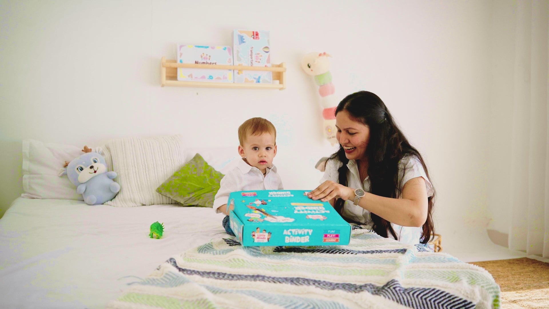 My baby is 22 months old. He loves the busy binder. I find the product entertaining as well as educational. The binder encourages independent play.