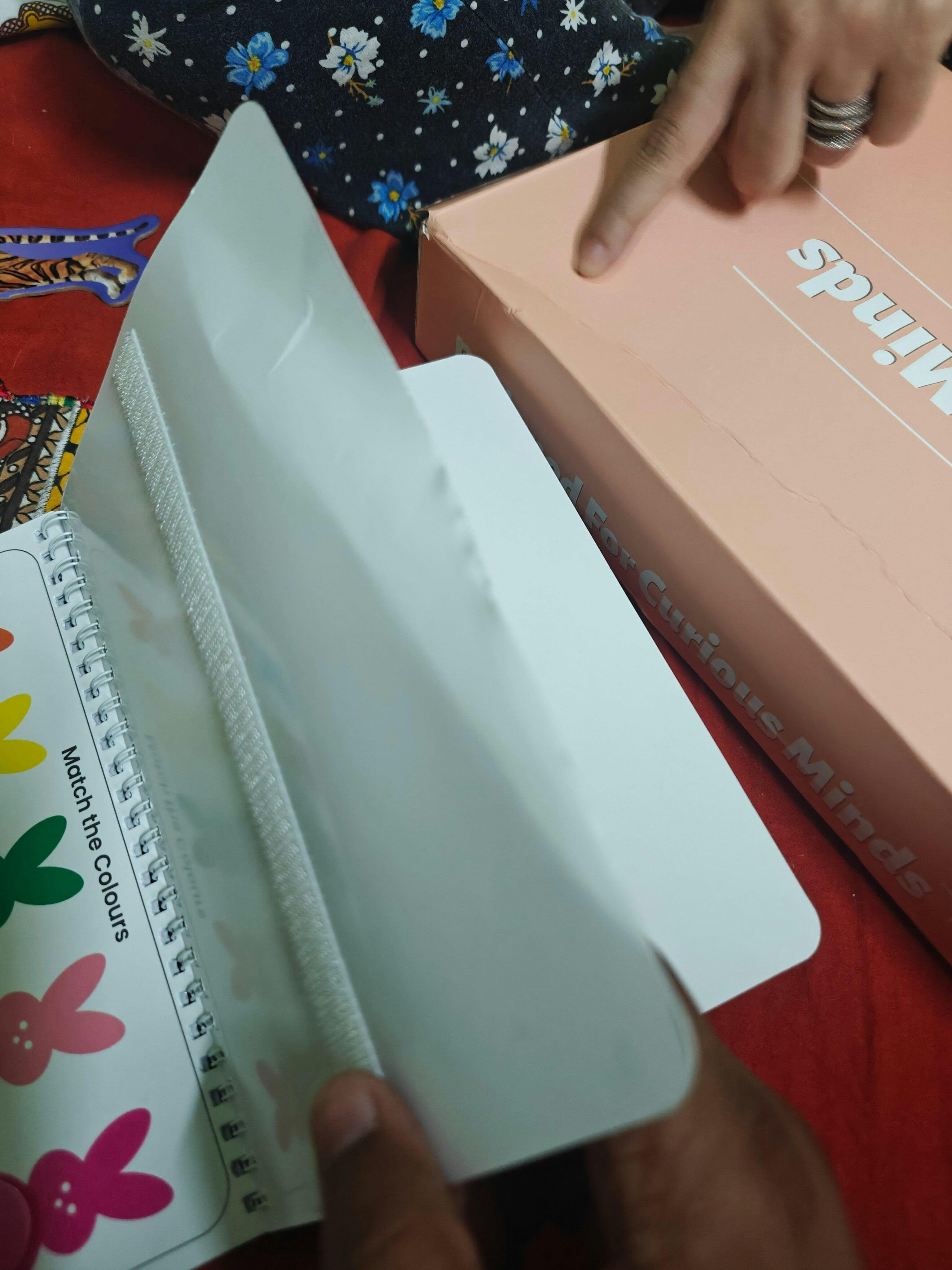 My daughter loved it. Keeps her engaged. Learnt colors. But the only minute complaint I have is the quality, especially of colors could be improved. She could easily tear it while trying to remove it from velcro.