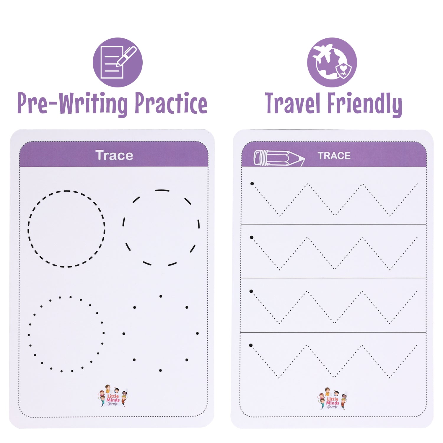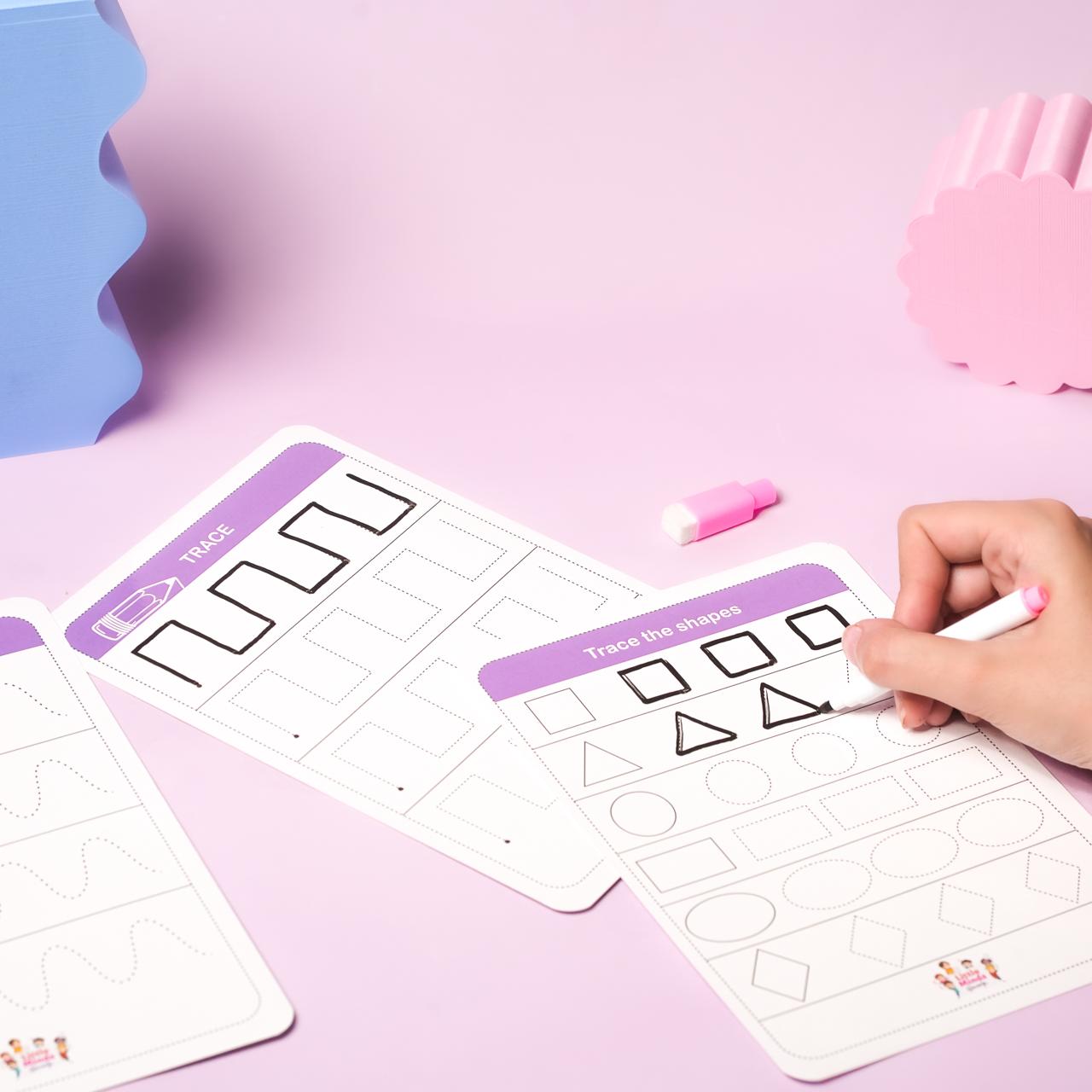 This combo features Level 1 and Level 2 tracing sheets designed to support your child’s handwriting development. Level 1 focuses on basic shapes and lines, while Level 2 introduces more complex patterns and letters. Perfect for building fine motor skills, hand-eye coordination, and early writing abilities
