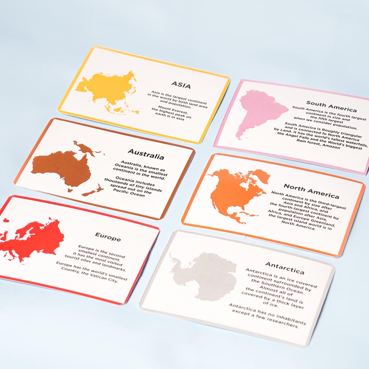 - Continents Flashcards: Learn about each continent with colorful and informative flashcards.