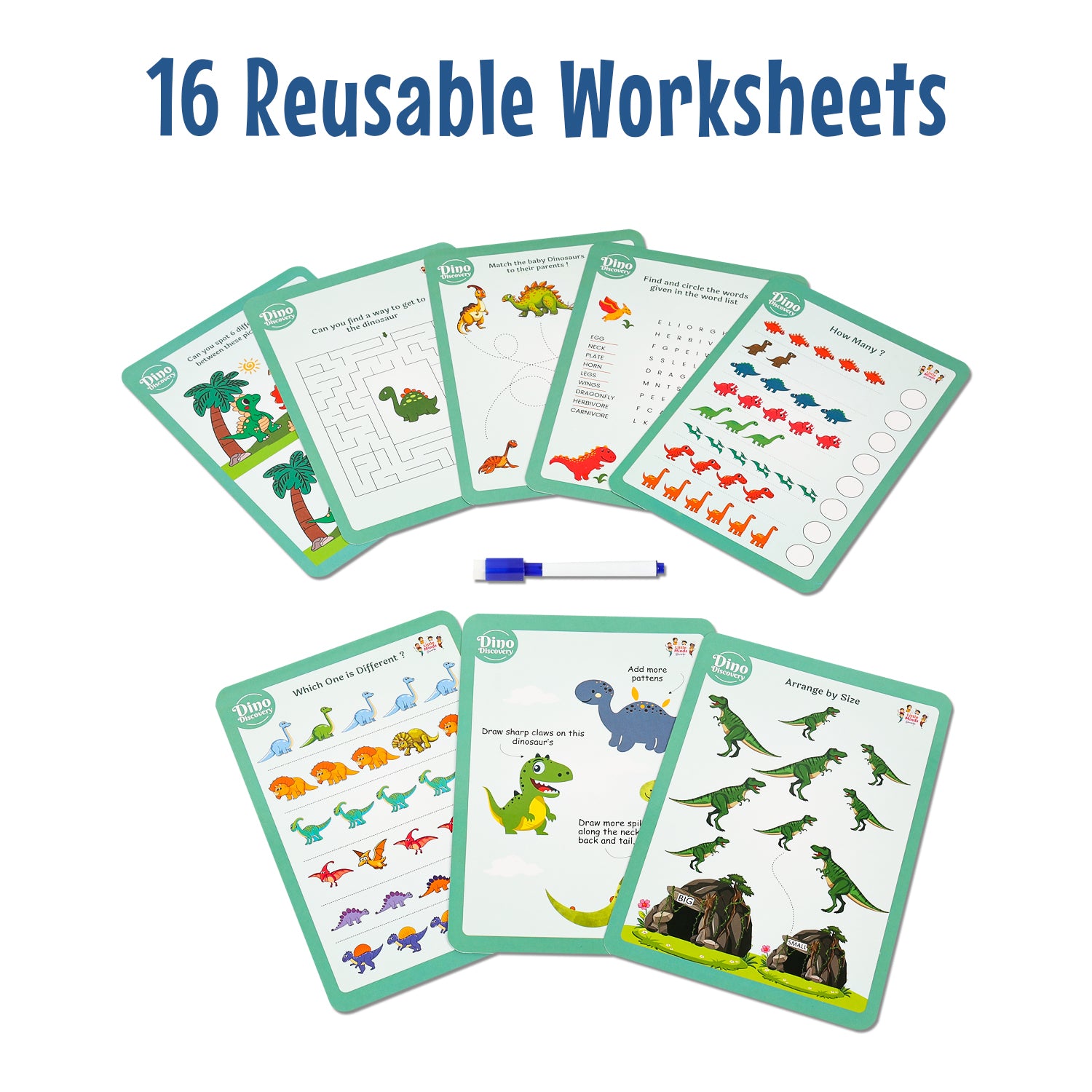 Discover our collection of 16 reusable dinosaur worksheets! These engaging activities include matching, join-the-dots, tracing, I Spy, spot the difference, mazes, and more, designed to make learning fun and interactive for kids.