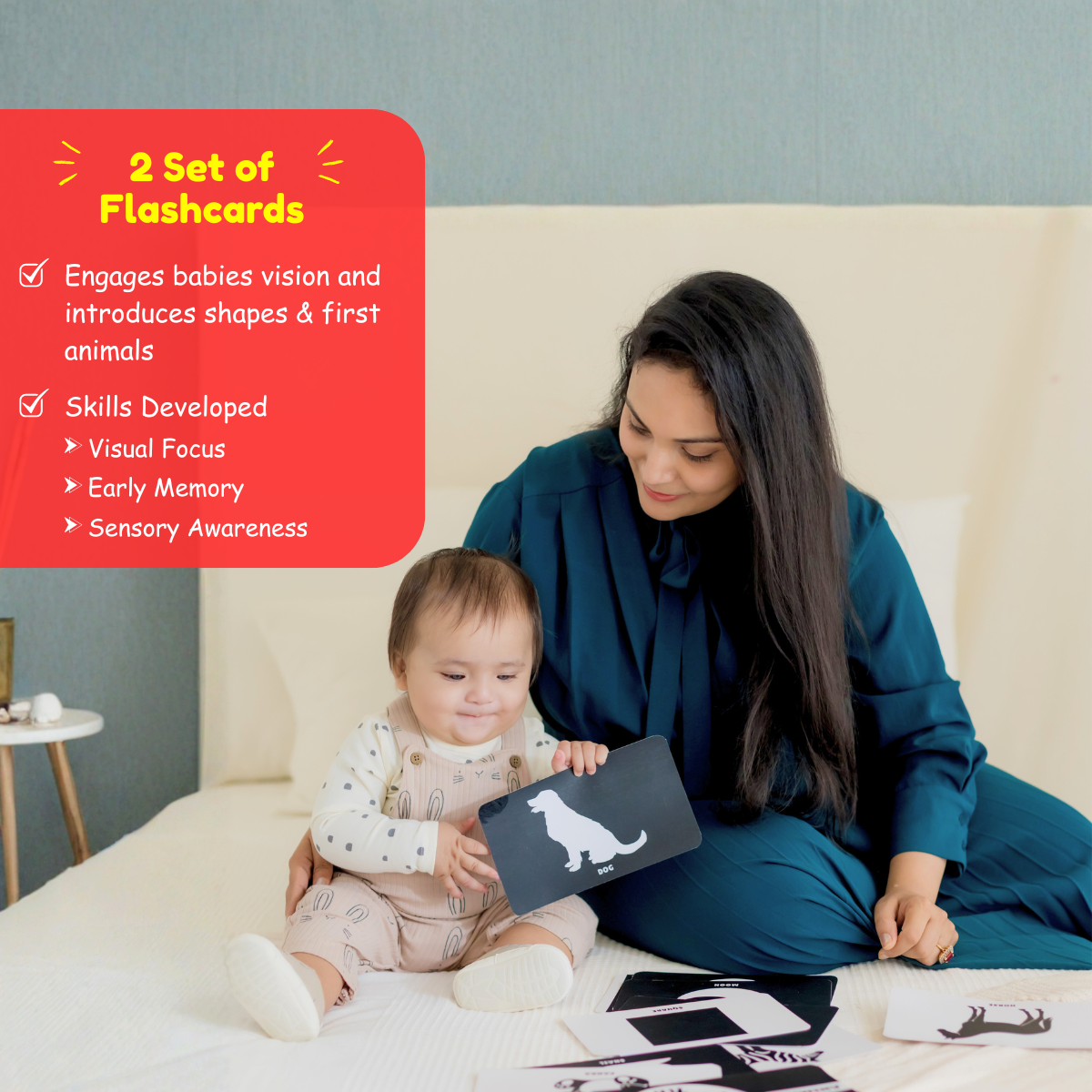 Shikha I’m so impressed with the Montessori kit! The high-contrast cards caught my baby’s attention instantly, and all the other toys are perfect for sensory play and early learning.