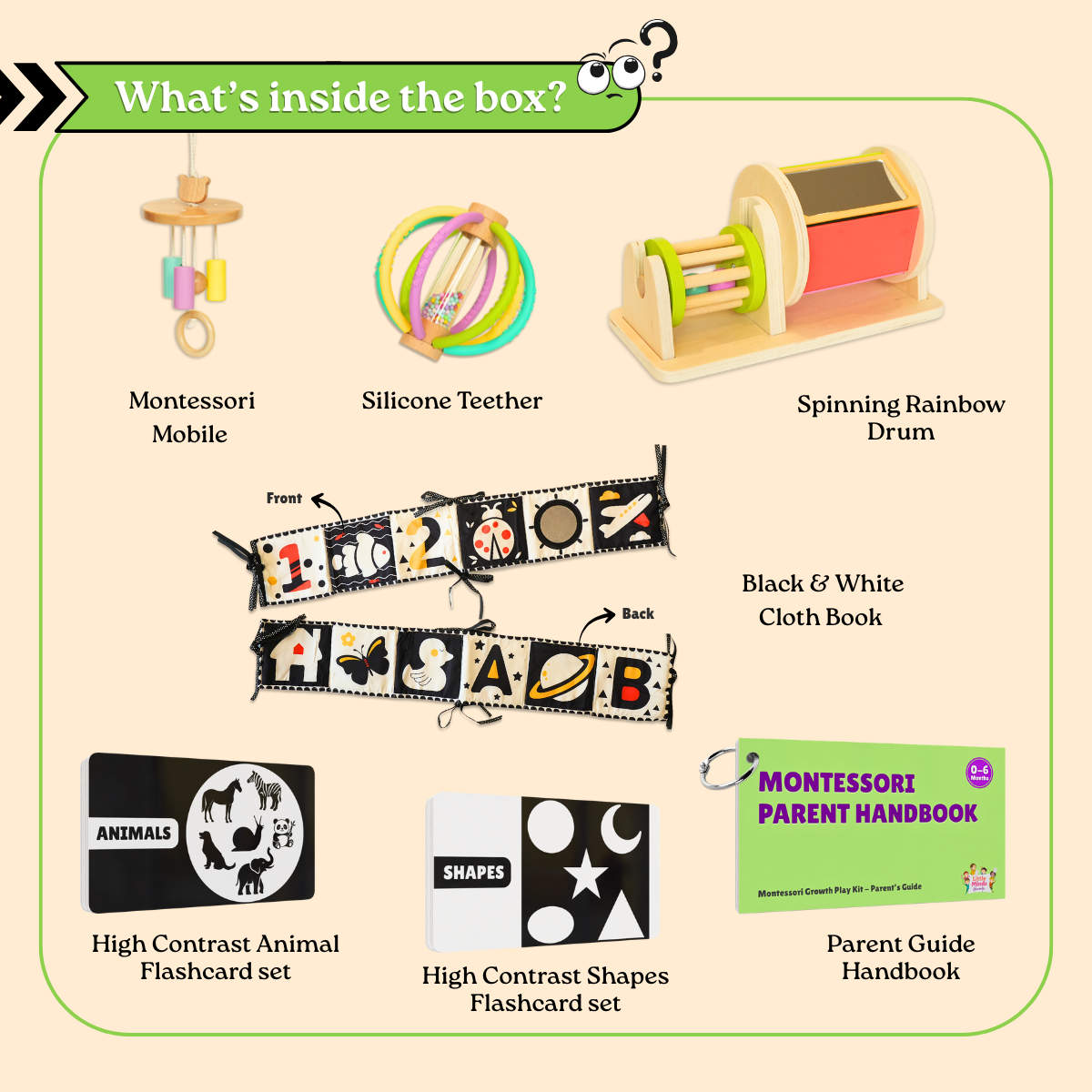 Give your baby the best start with our Montessori Box, specially designed new borns . Each item stimulates your baby’s senses, encourages exploration, and supports early developmental milestones.