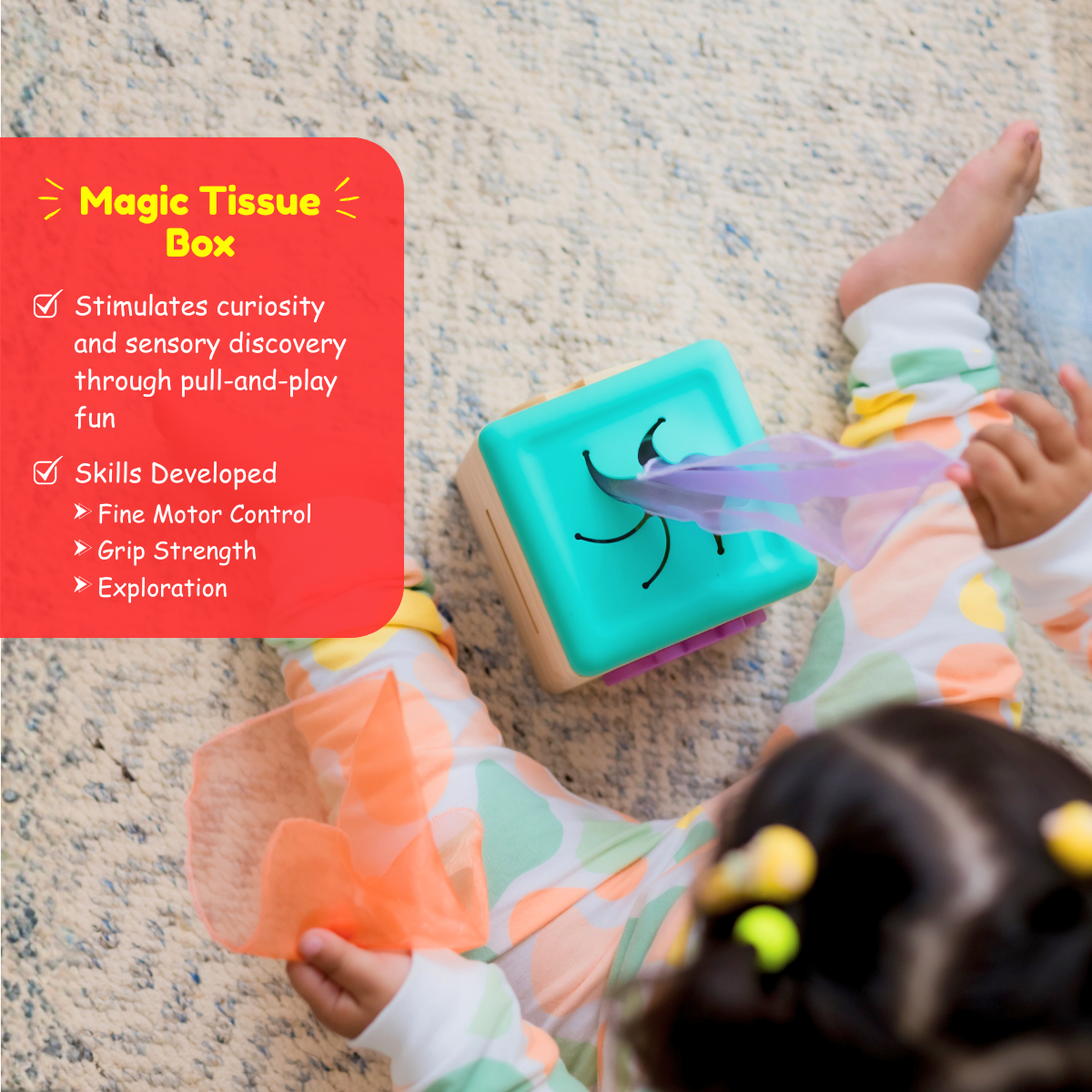 - Magic Tissue Box: Encourages curiosity and strengthens fine motor control.