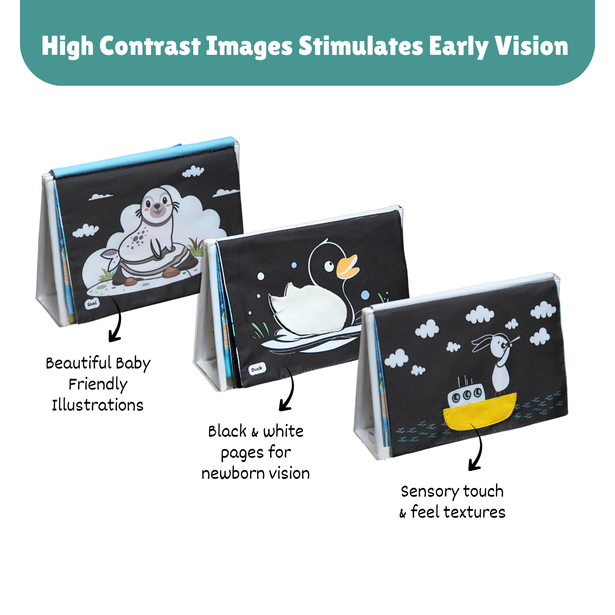 - High-contrast visuals for visual development